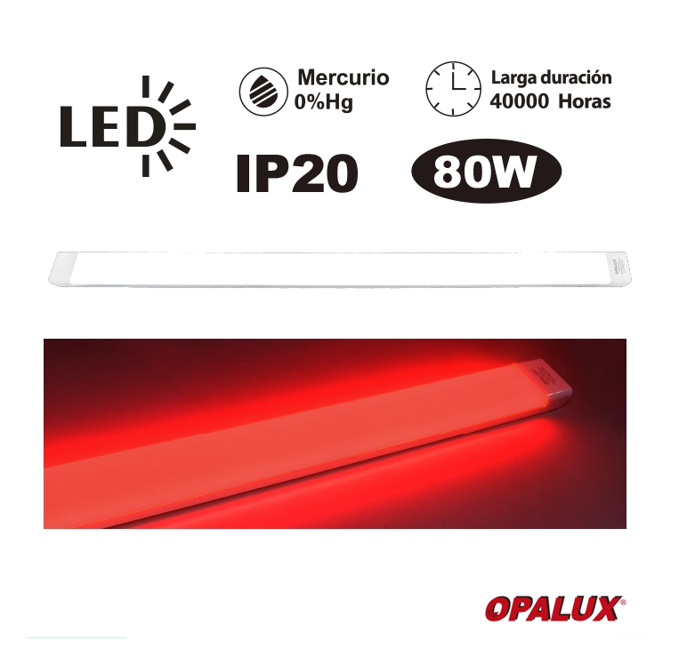 FIXTURE SLIM LED PAVONADO 80W COLOR ROJO 120 CM «OPALUX»