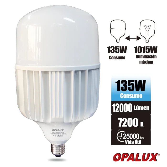 FOCO BOTELLA 135W T/BOTELLA «OPALUX» , 7200K, 12000LM, E40, 170-265V