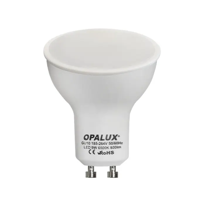 FOCO DICROICO LED 9W GU10 120° LUZ CALIDA «OPALUX» 800LM 3000K 185-264VAC Ø5CM 5.7CM ALTO.
