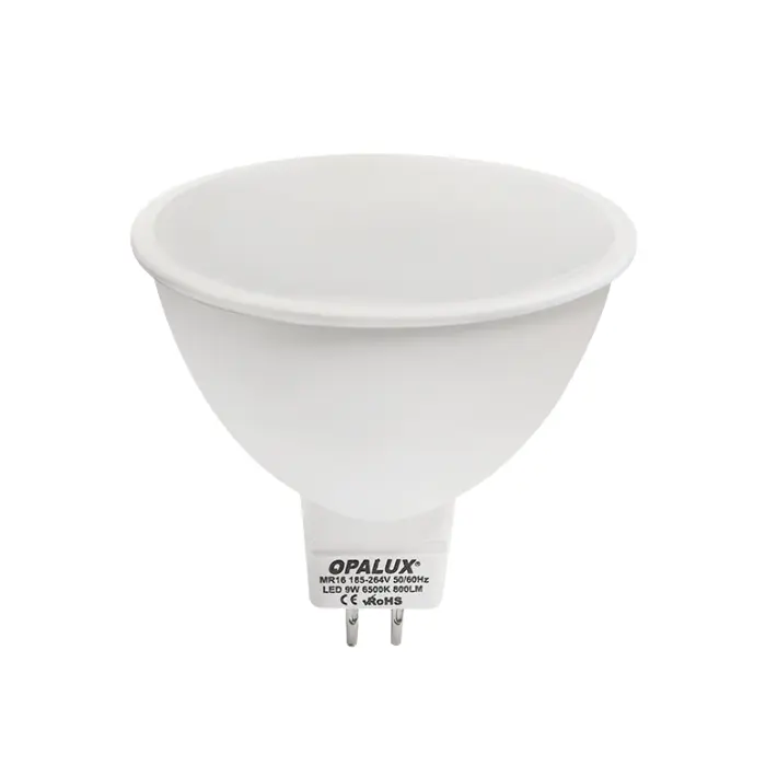 FOCO DICROICO LED 9W MR16 120° LUZ CALIDA «OPALUX» 800LM 3000K 185-264VAC Ø5CM 5.4CM ALTO.CJX100