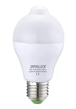 FOCO LED 7W LUZ CALIDA «OPALUX» C/SENSOR DE MOV.NOCTURNO 3000K 600LM 360° E27 110-240VAC FACTOR 0.9 CJX50
