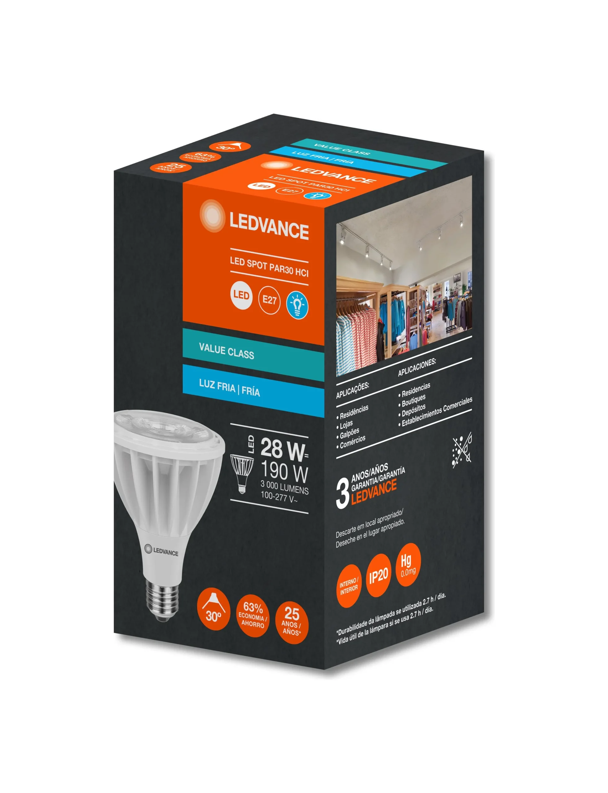 FOCO LED PAR30 28W 6500K 30° IRC80 25000Hrs - Imagen 1