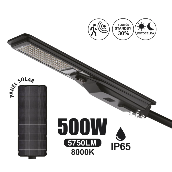 LUMINARIA CON PANEL SOLAR 500W «OPALUX» 5750LM 8000K IP65 MASTERX1